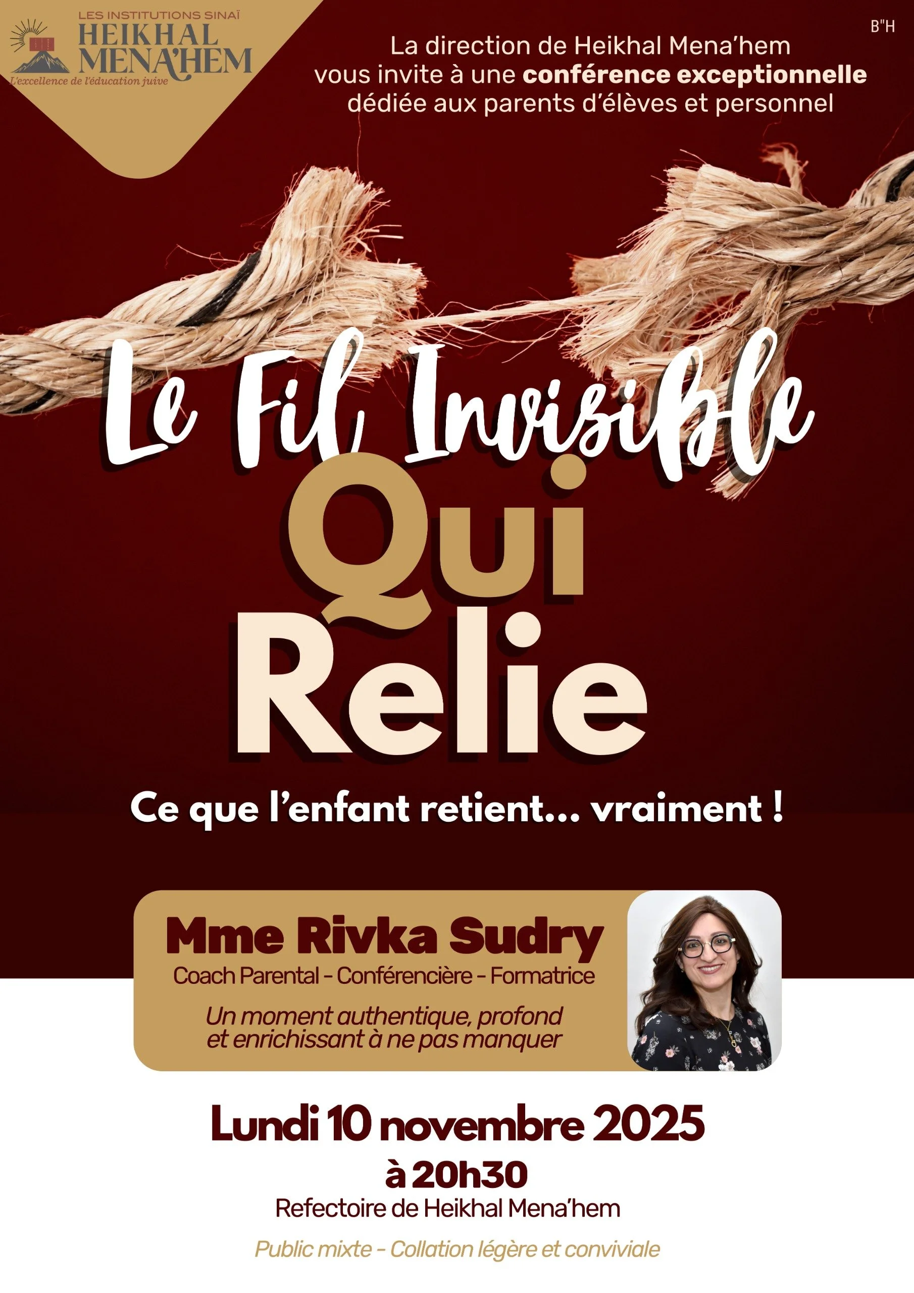 Lundi 10 novembre à 20h30 - Réfectoire d’Heikhal Menahem